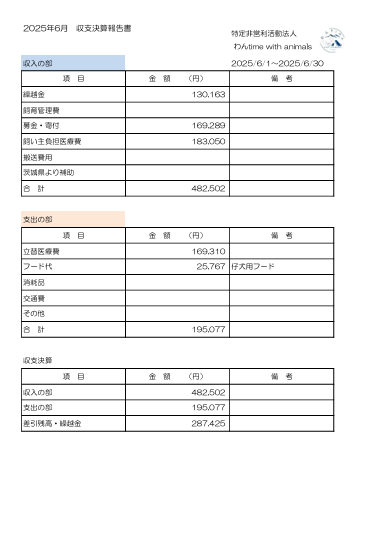 避妊去勢手術が続き、かなりの出費になりました😱7月も叶、朔の去勢手術があり😣
