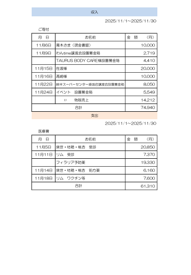 2025年11月収支報告